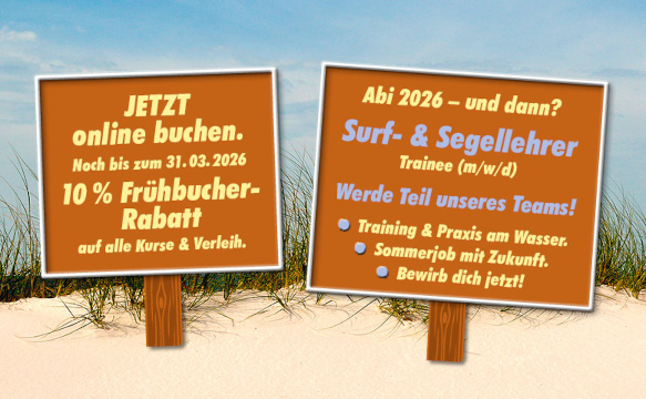 Seit über 50 Jahren vermitteln unsere professionellen Trainer Wassersportkurse für jedes Level. Vom Optimisten-Segeln für Kinder, über sportliches Katamaransegeln für Erwachsene, bis hin zu Windsurf- und Wingfoil-Kursen, die dich über das Wasser gleiten lassen. Wer es entspannter mag, entdeckt beim SUP die Natur aus einer neuen Perspektive.